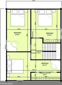 此款木屋設計為兩層樓,木房屋總面積100米²;一個外部車庫加住宅四室和廚房住宅。一樓的生活空間有53平方米,二樓47米²,車庫-